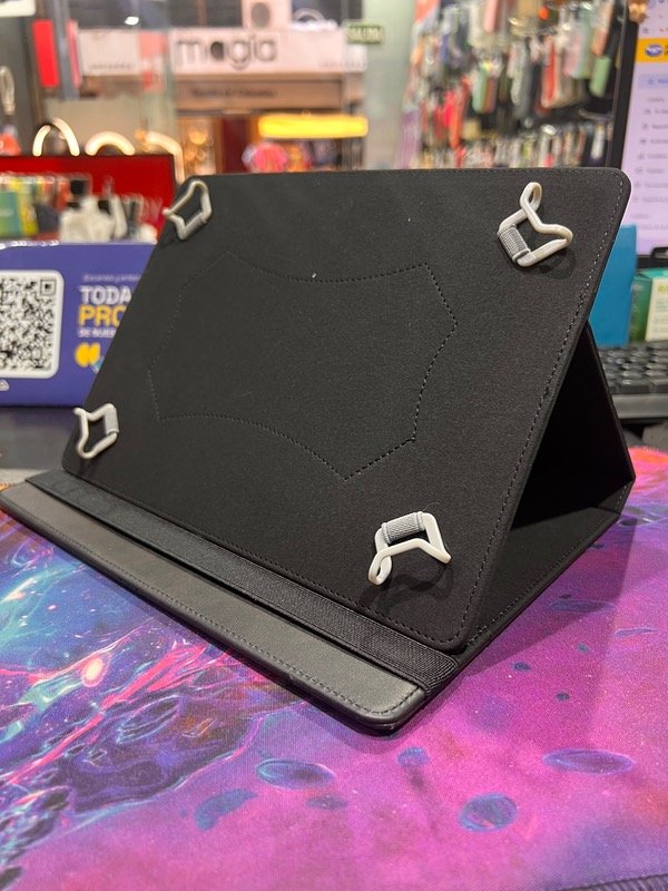 FUNDA DE COLOR NEGRO CON AGARRE EXTENSIBLE, Y ELASTICO.